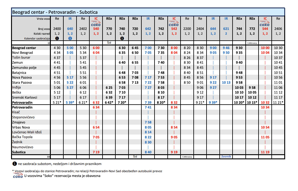 | 時刻表 | Red vožnje | Ред вожње | レド・ヴォジュニェ |